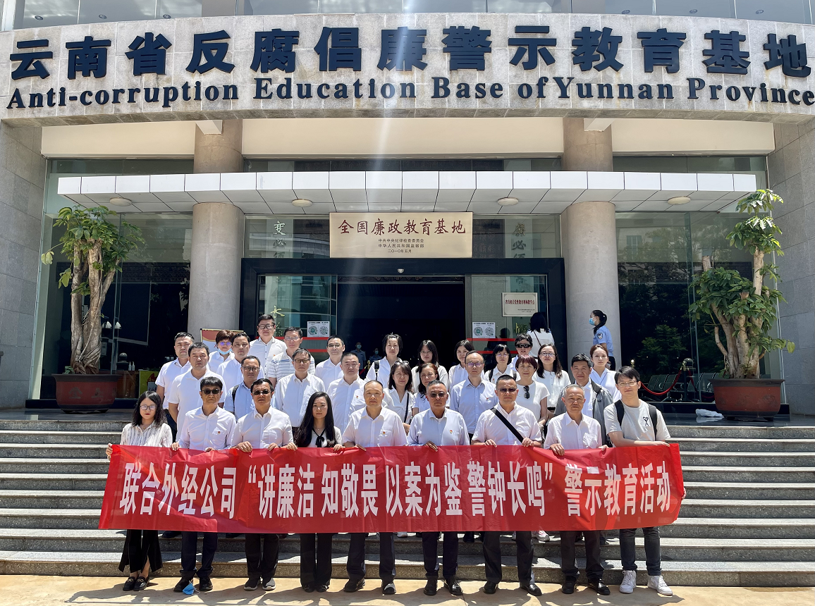 為持續(xù)推進(jìn)“清廉聯(lián)合外經(jīng)”建設(shè),開展“講廉潔、知敬畏、轉(zhuǎn)作風(fēng)、防風(fēng)險、促發(fā)展”以案為鑒、以案促改活動,聯(lián)合外經(jīng)公司黨委、紀(jì)委近日組織參觀云南省反腐倡廉警示教育基地,公司在昆領(lǐng)導(dǎo)干部及黨員職工30余人參加活動。
