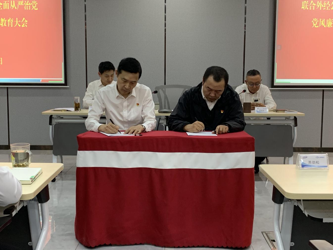 會上,公司黨委與領(lǐng)導(dǎo)班子成員簽訂2025年度一崗雙責(zé)責(zé)任書,與各部門、駐外辦事處及所屬公司負責(zé)人簽訂2025年度廉潔從業(yè)責(zé)任書,參會人員簽訂領(lǐng)導(dǎo)干部廉潔從業(yè)承諾書及領(lǐng)導(dǎo)干部廉潔家風(fēng)建設(shè)承諾書。