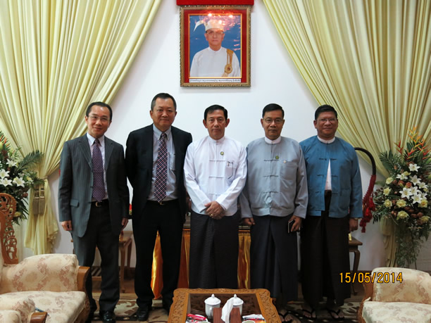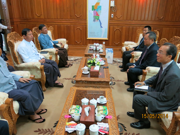 2014年5月15日當?shù)貢r間早上9點, 內(nèi)比都鐵道部,云南能投聯(lián)合外經(jīng)股份有限公司董事長馮柯先生與緬甸鐵道部部長U Than Htay,就加強雙邊鐵路方面的經(jīng)濟技術合作交換意見。鐵道部副部長 U Myint Thein 和U Lwin Thaung等參加了會見。