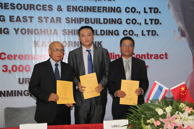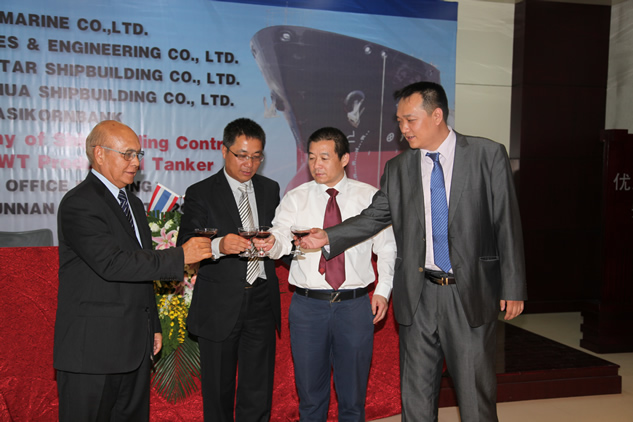 5月15日,在公司世博大廈會(huì)議室,隆重舉行了泰國3000噸油輪新造項(xiàng)目簽約儀式,參加項(xiàng)目的各方有泰國Nathalin集團(tuán),泰國PTT集團(tuán),泰國Kasicorn Bank,南京東嘉船廠,南京永華船廠。此次建造的4條3000噸油輪是繼交付7000噸油輪,化學(xué)品船,3000噸油輪之后,我們與泰國客戶的又一次合作,充分表明客戶對(duì)我們的信任,及我們?cè)谔﹪笆袌龅膱?jiān)實(shí)基礎(chǔ)。據(jù)悉,在3000噸油輪之后,我們將繼續(xù)就5000噸成品油輪的合作進(jìn)行深入交流討論。