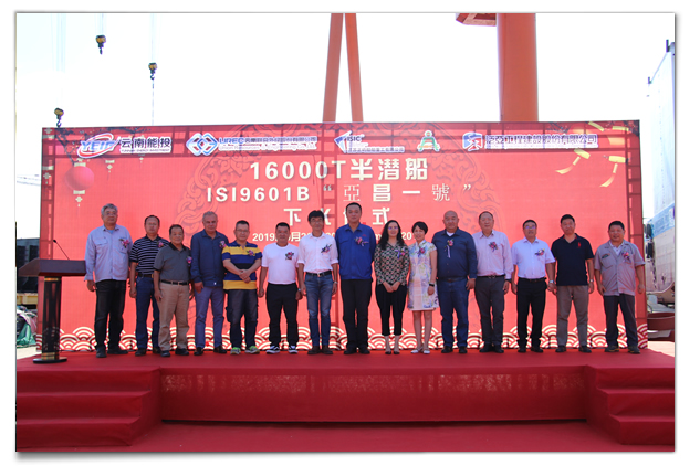 舉力半潛船成功下水剪香檳儀式合影2019年9月20日上午10點30分,聯(lián)合外經(jīng)為亞洲知名工程建設(shè)集團設(shè)計建造的第一艘16000噸舉力半潛船,船名“亞昌一號”在南...