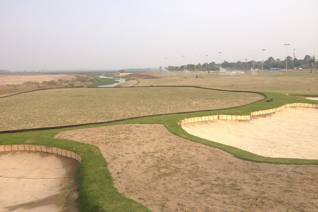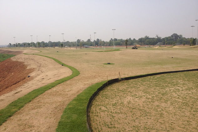 截至目前,項目已完成高爾夫球場、球場會所、房產(chǎn)區(qū)等的設計、規(guī)劃,并進入到施工階段;項目地塊上完成100余萬立方米土方的壩體建設、練習場填土、及部分房產(chǎn)區(qū)填土工作;球場建設方面,淺排水、球道鋪砂、球道細造型、噴灌安裝、照明系統(tǒng)燈、燈桿安裝、球車道建設、泵站建設安裝、植樹種草等綠化施工均在緊鑼密鼓的進行中。計劃在2015年6月,整個18洞高爾夫球場建設完成并可以對外營業(yè)。