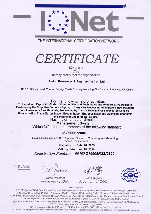 世界認(rèn)證聯(lián)盟證書(IQNET)