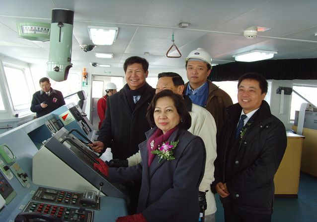 After delivery of the No.1 chemical tanker, the No.2 chemical tanker was handed over to the Thai ship-owner at the end of November, 2009. The representatives of the ship owner, the ship supervisor, the ship manufacturer and UREC attended the ceremony and the chemical tanker was named as “Bhureemas” which means golden land.