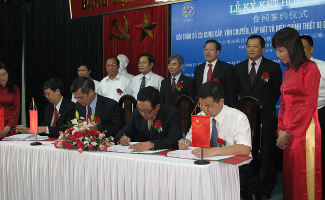 The engineering contract for equipment supply, transportation, installation and commissioning for Khe Bo Hydropower Station was at last formally signed in Hanoi on April 18, 2009 after the long-termed untiring efforts of UREC.